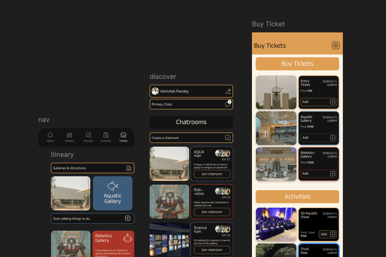Visitors often feel overwhelmed by the scale of Science City and struggle to decide what to explore within limited time. Insights showed a need for clear guidance, curated highlights, and a structured journey to help users navigate confidently and engage more meaningfully